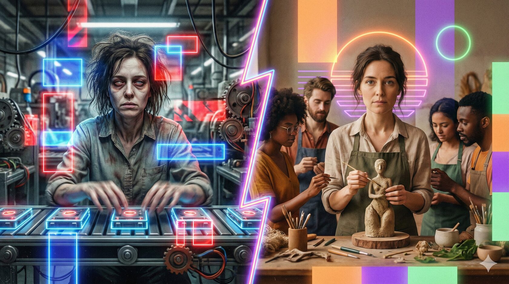 Системность освобождает творчество, но может и загнать его в угол, если забыть о балансе. Один из рисков - выгорание. Креативная работа эмоционально затратна, а в режиме конвейера автор быстро истощается. Креативное выгорание описывают как состояние эмоционального и ментального истощения, когда человек теряет способность генерировать новые идеи. Симптомы - хроническая усталость, прокрастинация, чувство бесполезности своих идей. Причины же часто коренятся в организационной культуре: перманентные дедлайны, отсутствие признания, размытые границы между работой и отдыхом. Показателен масштаб проблемы: по данным международного исследования 2025 года, две трети работников творческих индустрий испытывают проблемы с ментальным здоровьем из-за работы (тревожность, депрессию, выгорание). Парадоксально, но именно страсть к творчеству часто служит ловушкой: люди готовы жертвовать собой ради идеи, а индустрия эксплуатирует эту самоотверженность. Как метко отметил исследователь Марк Дьюз: «то, что делает работу в медиа особенной - творчество, автономность, вдохновение - одновременно загоняет людей в циклы самопожертвования». Чтобы избежать выгорания, система должна включать восстановление: отпуска, смену проектов, психологическую поддержку. Иначе конвейер лишает креативность главного топлива - внутренней мотивации.