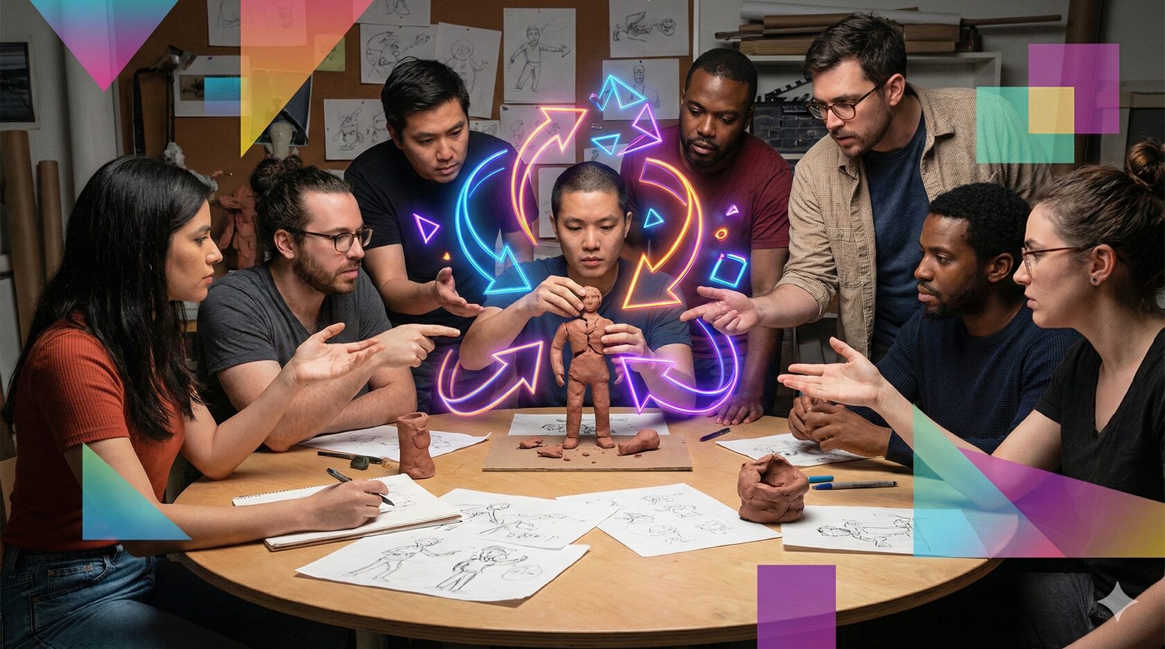 Наконец, интерфейсы для идей и монтаж. Креативный процесс редко бывает линейным - чаще это монтаж из набросков, итераций, кусочков, которые нужно собрать. Поэтому важны системы фиксации и доработки идей. Успешные команды вводят циклы обратной связи и прототипирования. Пример - легендарный Braintrust студии Pixar: внутренний совет, где режиссёры и сценаристы без страха обсуждают сырую версию мультфильма, находят проблемы и вместе придумывают решения. Эд Кэтмелл, президент Pixar, признаётся, что ни один фильм студии не начинался гениальным: первые черновые версии «успешных» картин были ужасны, и лишь серия правок сделала их шедеврами . В раннем варианте Toy Story главный герой Вуди был настолько неприятным персонажем, что тестовая аудитория его ненавидела. Только благодаря тому, что команда честно признала проблему и переделала десятки сцен, мир полюбил обаятельного Вуди. Вывод: творчество - это итерации. Черновик, обсуждение, улучшение - повторить. Подход «с одного раза в гений» не работает почти никогда. Продюсерский подход как раз и задаёт эти самые циклы, превращая разрозненные вдохновения в последовательный монтаж. Результат - воспроизводимый креатив: когда есть методика получать достойный результат проект за проектом, пусть и через пот и черновики.