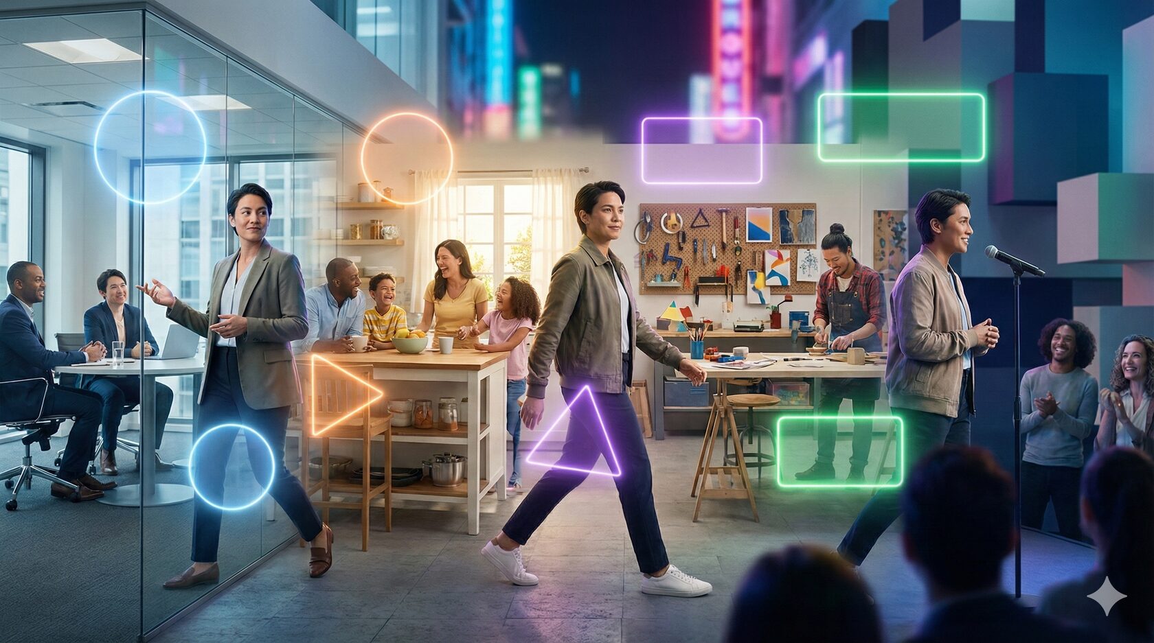 Несколько факторов этому способствуют. Во-первых, сложность ролей возросла. Если раньше человек за жизнь менял 2–3 социальные роли (например, от школьника к работнику и затем пенсионеру), то сегодня мы вынуждены осваивать десятки ролей, иногда одновременно. Креативный предприниматель может утром быть продюсером своего проекта, днём – экспертом на конференции, вечером – блогером в Instagram, а ночью – учеником на онлайн-курсе. Каждая ситуация требует своей «версии» личности. Во-вторых, ускорение изменений приводит к тому, что навыки и ценности устаревают, а вместе с ними – и самоощущение. Чтобы оставаться эффективным, приходится не цепляться за старое «я», а быстро перезагружать себя, словно программное обеспечение.