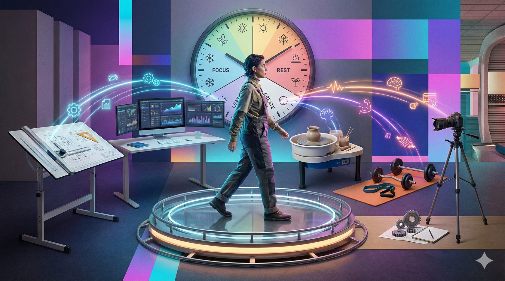 Если жизнь — портфель проектов, то главный ограниченный ресурс продюсера – это внимание и время. В отличие от денег, его нельзя приумножить, можно лишь разумно распределить. Ведение нескольких контуров сразу порождает естественный вопрос: как не распылиться и не перегореть? Ведь параллельное ведение множества задач чревато потерей фокуса. Психологи предупреждают: постоянное переключение контекста снижает продуктивность – исследования Американской психологической ассоциации показали до 40% потери эффективности при переключении между задачами . Поэтому многоконтурным личностям важно вырабатывать стратегии управления нагрузкой и цикличностью работы.