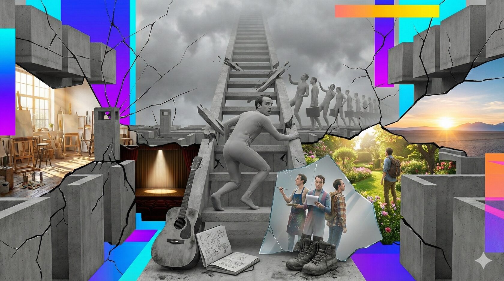 - От поиска одной цели — к конструированию уникального сочетания. Вместо мучений о призвании («уж не упустил ли я свое единственное дело жизни?») приходит конструкторское отношение: я могу собрать fulfilling-жизнь из разных элементов. Здесь важны творчество и ответственность: некому сверху выдать готовый рецепт, но в этом и свобода. Жизнь становится продуктом вашего дизайна, а не пассивного следования шаблону.