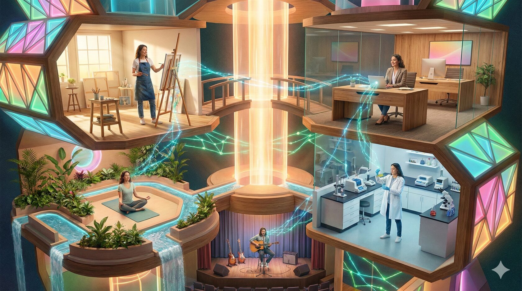 Мы уже живём в мире, где многие — сознательно или вынужденно — распределяют себя между несколькими сферами. По данным недавнего исследования, рекордные ~5% людей одновременно работают более чем на одной работе (данные по США на 2025 год) . А при более широком учёте фриланса и временных проектов доля «многостаночников» достигает 20–30% . Причём это не только вынужденные подработки для выживания. Исследование показало, что работники ценят множественную занятость за автономию и гибкость, а не только за деньги; особенно поколение Z выбирает несколько ролей именно для разнообразия идентичности и связей . Это и есть переход к многоконтурной жизни, где я — это не одна должность, а динамическая система разных контуров.